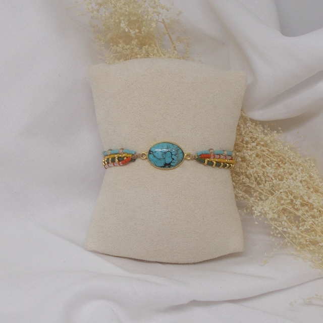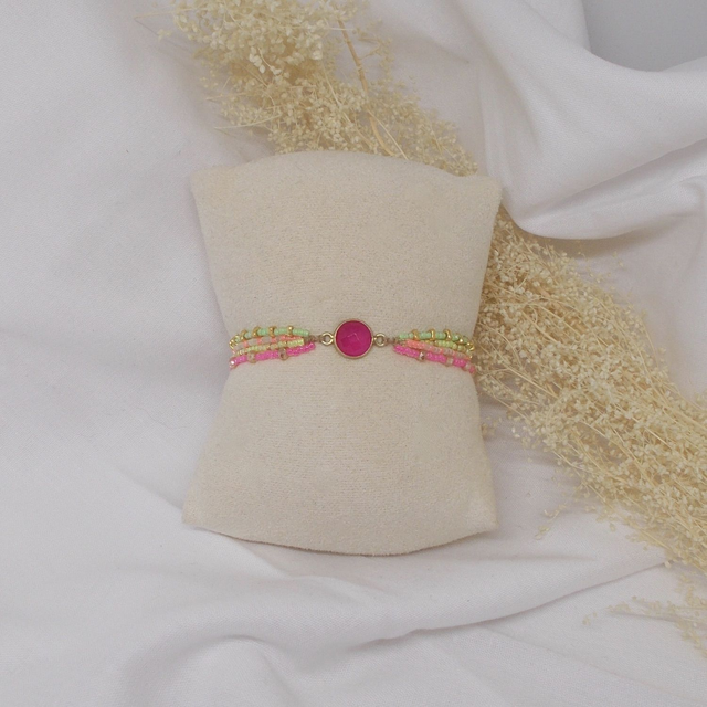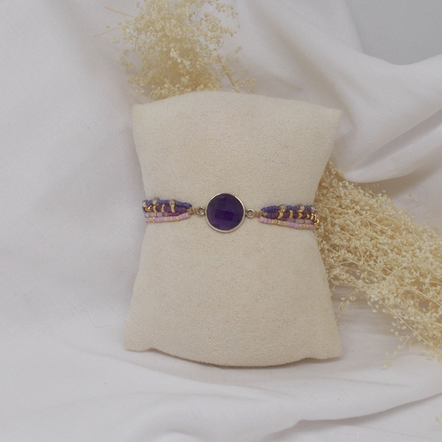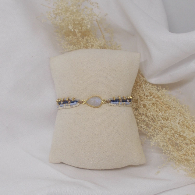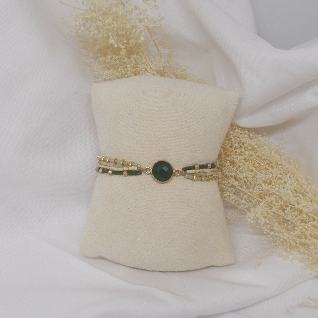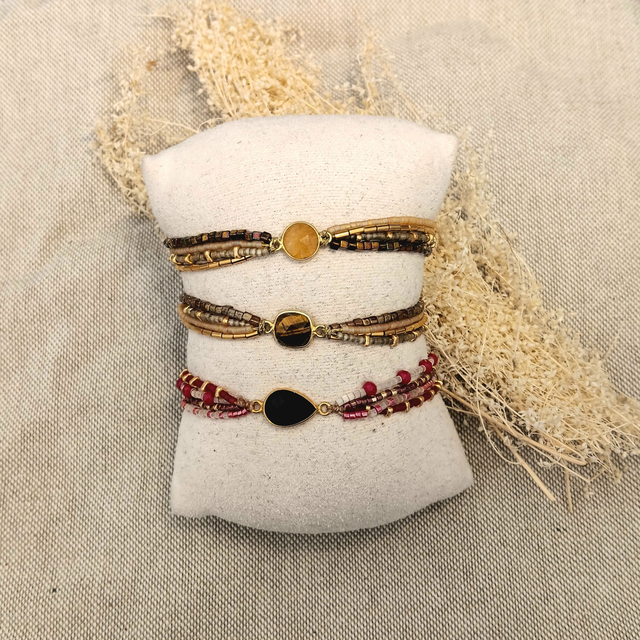 Bracelet en perles de verre Miyuki, perles de verre facettées et perles de verre triangulaires dorées, et orné d'un intercalaire en pierre gemme (cerclage en métal doré à l'or fin, garanti sans plomb, sans nickel et sans cadmium)